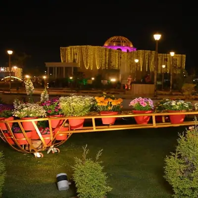 Spread across 33,000 sq. meters, the Vatika recreates sacred places like Chitrakoot, Panchvati, Kishkindha, Ashok Vatika, and Pampa Sarovar, allowing visitors to walk through the timeless journey of Lord Ram. With lakhs of vibrant flowers, floral sculptures of Ram Darbar, Jatayu, Shivling, and Ram Setu, the garden is both a visual and spiritual treat.